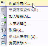 Vault Data Standard 會將預設指令「新資料夾」 取代為「新標準資料夾...」指令 。
