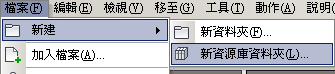 從「檔案」功能表中,按一下「新建」►「新資源庫資料夾」。隨即顯示「新資源庫資料夾」對話方塊。