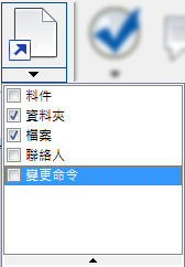 | 在出庫使用時包括指定的子系檔案與忽略子系檔案之間切換。 按一下「包括子系」按鈕,將指定的子系檔案類型加入至目前的檔案清單中。 按一下「包括子系」按鈕下方的下拉箭頭,變更在打開「包括子系」功能時要包括哪些子類型。 再按一下「包括子系」功能即可將其關閉。所有包括設定都會被忽略。 |