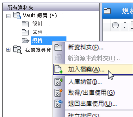 使用 Vault 用戶端中的「加入檔案」指令,將檔案加入至 Vault。