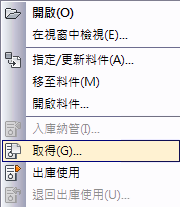 也可以選取「取得」對話方塊中的勾選方塊,來出庫使用檔案。