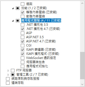 在 Windows Server 2019 或 2022 系統上載入 Internet Information Services。