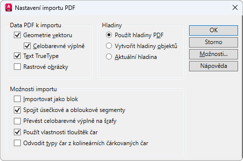 -PDFIMPORT (příkaz): Nastavení