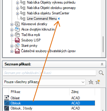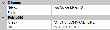 Chcete-li vložit možnosti nabídky, které se vztahují k aktivnímu příkazu v místní nabídce, použijte alias PŘÍKAZ_název příkazu. Za text název příkazu můžete dosadit jakýkoli platný příkaz. Pokud byste například chtěli, aby se možnosti nabídky zobrazily v místní nabídce při použití příkazu ÚSEČKA, použili byste alias PŘÍKAZ_ÚSEČKA.