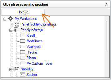 7. V podokně Obsah pracovního prostoru klikněte na tlačítko Hotovo.