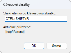 6. Kliknutím na tlačítko OK kombinaci kláves přiřaďte a ukončete dialog Klávesové zkratky.