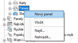 - Klikněte pravým tlačítkem myši na uzel Panely. Klikněte na položku Nový panel.