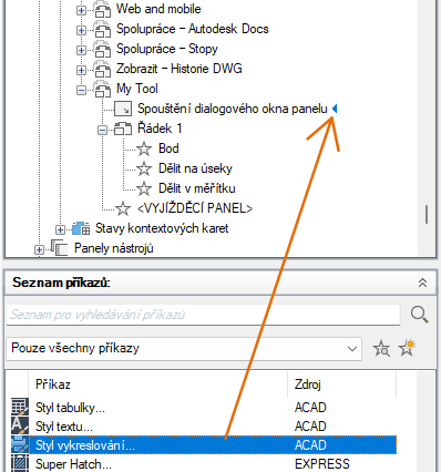 Přiřazení příkazu ke spuštění dialogu panelu