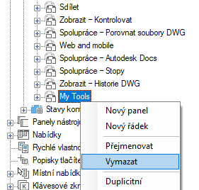 - Pravým tlačítkem klikněte na panel, který chcete odebrat. Klikněte na příkaz Vymazat.