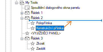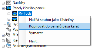Kopírovaný panel nástrojů bude umístěn pod uzel Pás karet