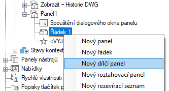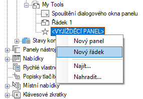 - Pravým tlačítkem klikněte na panel pásu karet, do kterého chcete přidat řádek. Klikněte na položku Nový řádek.