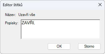 V dialogu Editor štítků zadejte do pole Štítky text, který představuje štítek pro příkaz.