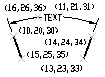 Body (13,23,33) a (14,24,34) určují koncové body čáry sloužící k určení první vynášecí čáry. Body (10,20,30) a (15,25,35) určují koncové body čáry sloužící k určení druhé vynášecí čáry. Bod (16,26,36) určuje umístění oblouku kótovací čáry. Bod (11,21,31) určuje bod poloviny textu kóty.