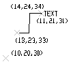 Bod (13,23,33) určuje umístění prvku a bod (14,24,34) určuje koncový bod odkazu. Bod (11,21,31) určuje bod poloviny textu kóty. Bod (10,20,30) je umístěn na počátku USS, který je aktuální při vytvoření kóty.