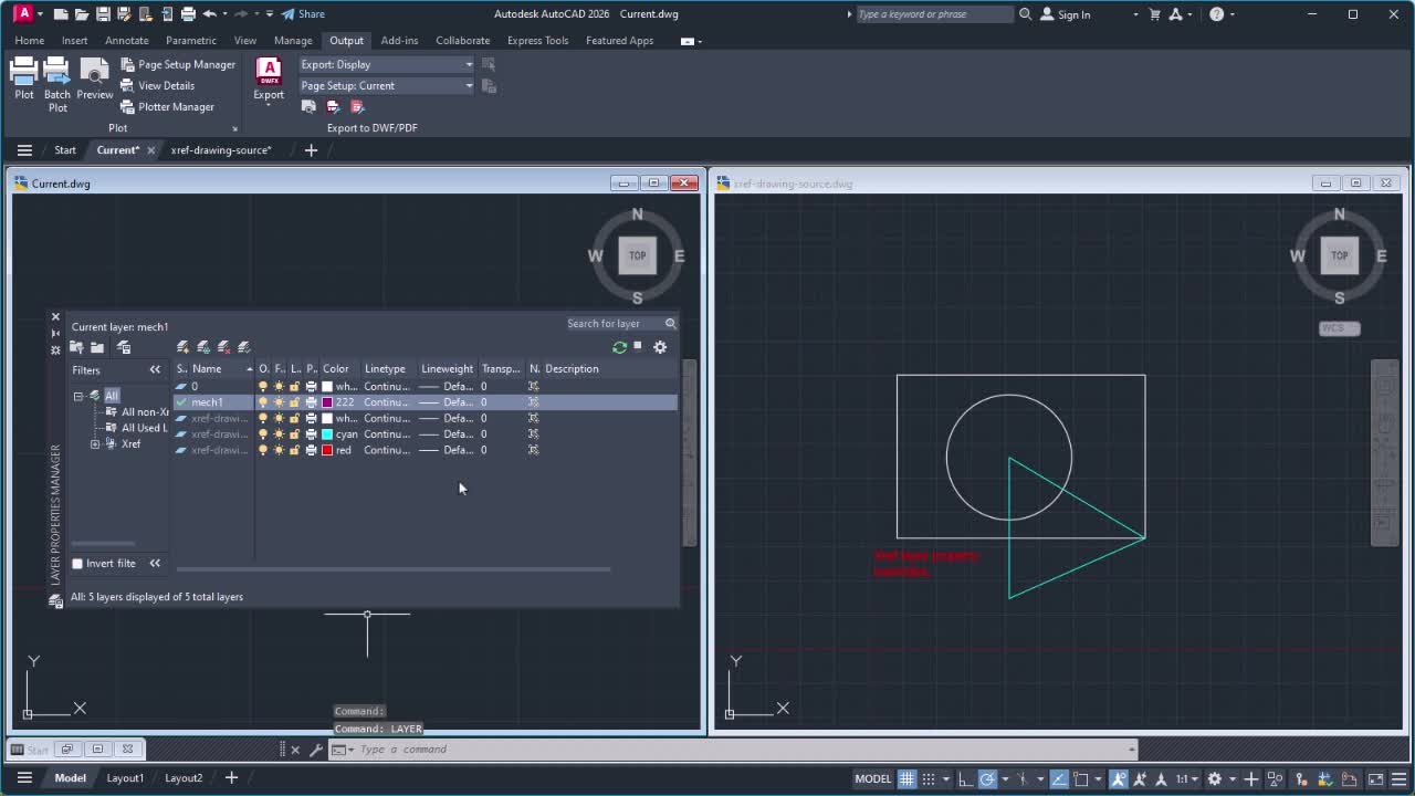 Podívejte se, jak lze řídit zobrazení přepsání vlastností hladin externích referencí v aktuálním výkresu.
