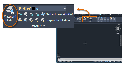 Hladiny slouží k uspořádání výkresu a umožňují dočasně potlačit zobrazení nepotřebných grafických dat. Ke každé hladině můžete také přiřadit výchozí vlastnosti, například barvu a typ čáry.