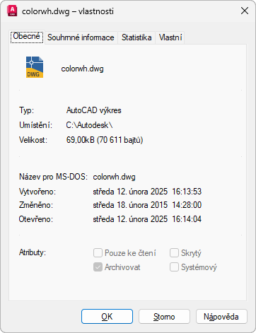 Zobrazí informace o souboru výkresu jen pro čtení, které jsou odvozeny z operačního systému.