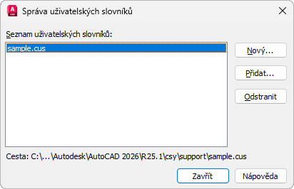 Umožňuje přidat existující uživatelský slovník z vašich seznamů souborů.
