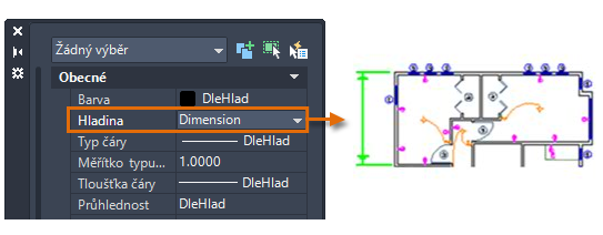 Vlastnosti objektu řídí vzhled a chování objektů a slouží k uspořádání výkresu.
