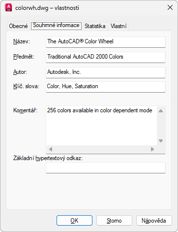 Karta Souhrnné informace (Dialog Vlastnosti výkresu)