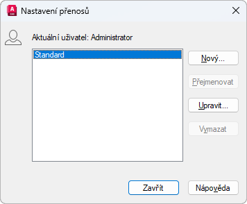 Přejmenuje aktuálně zvýrazněné nastavení přenosu.