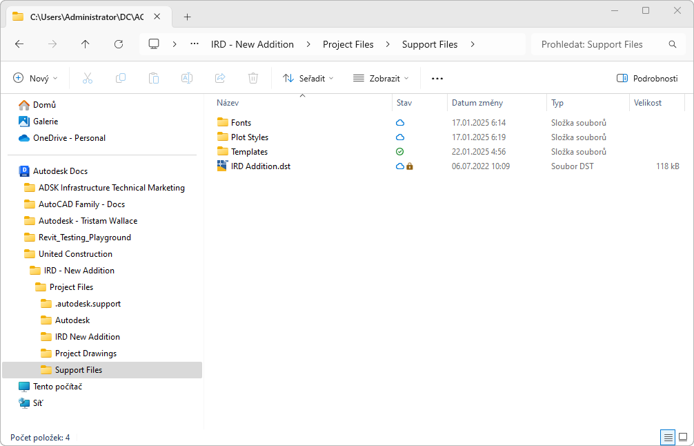 Podpůrné soubory přidané do místních složek budou synchronizovány do služby Autodesk Docs aplikací Desktop Connector.