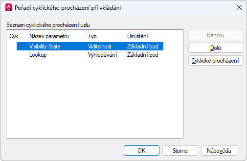 Určuje pořadí cyklického procházení uzlů, které by mohly být použity jako body vložení reference dynamického bloku.
