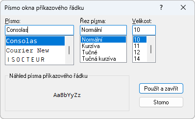 Písmo textu použité v příkazovém okně lze podle potřeby změnit.