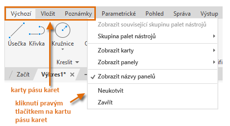Poznámka: Do předchozího umístění vrátíte pás karet dvojím kliknutím na záhlaví pásu.