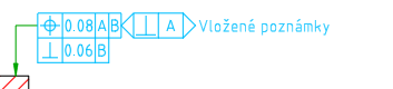 Vložené poznámky Určuje text, který musí být zobrazen na stejném řádku jako geometrická tolerance. Na kreslicí ploše se poznámky a geometrické tolerance pohybují společně jako jeden celek. Tato možnost je k dispozici pouze v revizi ISO 1101:2017(E).