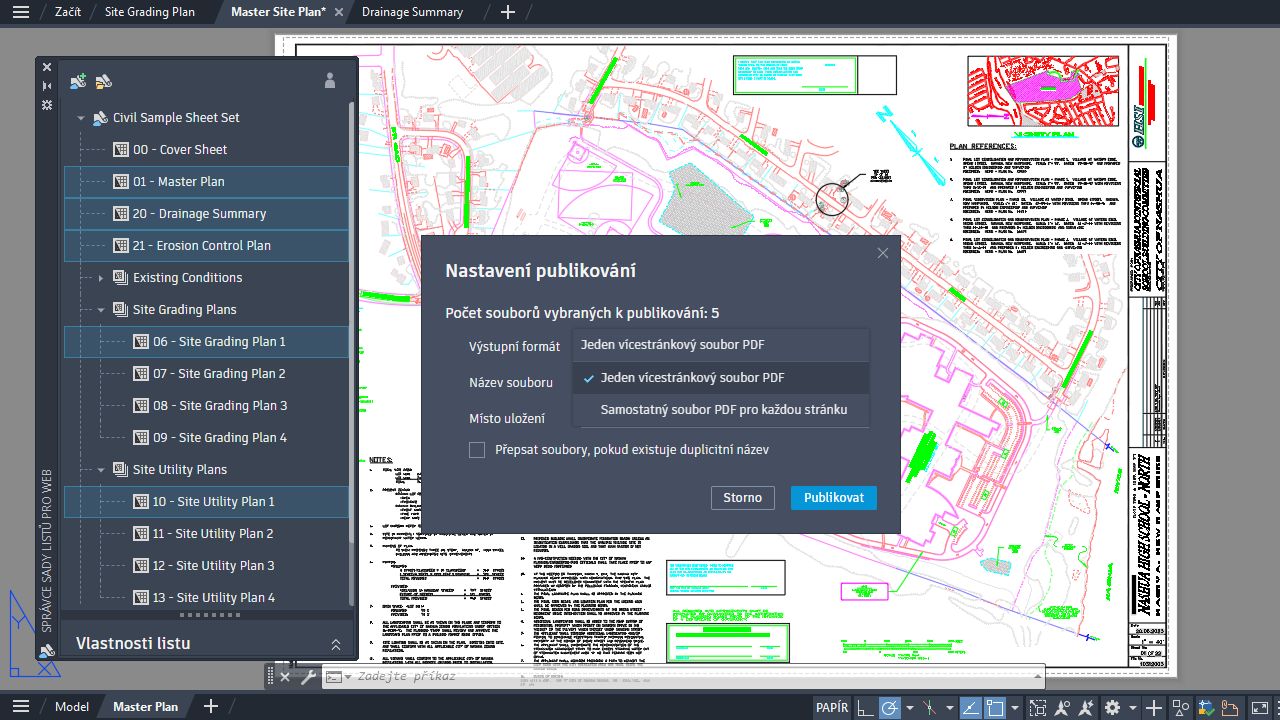 Systémová proměnná PDFSHX: Když proměnnou PDFSHX nastavíte na hodnotu 2, budou se textové objekty používající písma SHX při exportu výkresu do souboru PDF ukládat jako skrytý text. Díky tomu je možné text v souboru PDF hledat a vybírat.