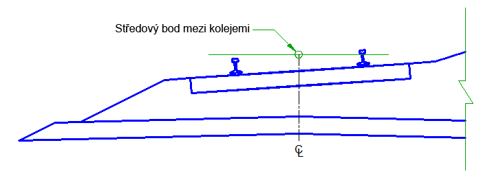 Vertikální odsazení mezi spádovým bodem profilu základny a středovým bodem mezi kolejemi. Pokud je u koleje použit výškový cíl, je tato hodnota přepsána. |