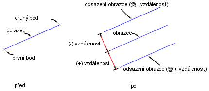 vzdálenost Vzdálenost odsazení od aktuálního bodu. Tuto hodnotu musíte zadat v délkových jednotkách aktuální zeměměřické databáze.