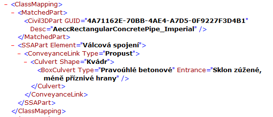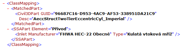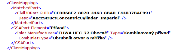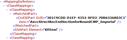1. Otevřete výchozí součást souboru mapování XML v textovém editoru. Tento soubor se nachází v umístění C:\ProgramData\Autodesk\SSA <verze>\Support\SSA_Mapping_Definition_Civil.XML.
