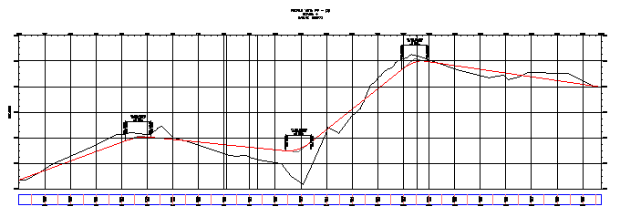 Zobrazení profilu po sekcíchje kompaktnější, přičemž výškový rozsah je asi 11 metrů. U rozděleného staničení je uvedeno samostatné měřítko výšek pro každou část zobrazení profilu.