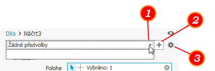 Předvolba je sada předdefinovaných vlastností prvku, včetně tolerancí a možnosti výstupu booleovské operace. Když předvolbu vyberete, vyplní se její hodnoty na panelu vlastností. To umožňuje snadné opětovné použití často používaných sad vlastností.