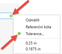 U parametrů můžete určovat tolerance, které se uloží do předvoleb. Klikněte na rozevírací šipku, vyberte položku Tolerance... a určete typ tolerance a rozsah. Uložte hodnotu do vámi určené pojmenované předvolby.