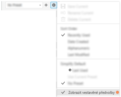 Zobrazit vestavěné předvolby – vestavěné předvolby jsou ve výchozím nastavení zobrazeny. Pokud se nepoužívají, mohou být skryty.