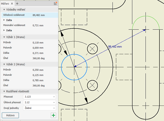 Měření lze použít v prostředí sestavy, součásti a výkresu.