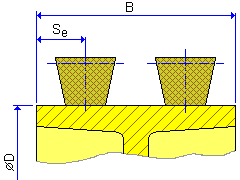 Pro úspěšné určení výchozí roviny, účinného průměru, nebo průměru stoupání pro každou řemenici pomocí generátoru klínového řemenu se používají jmenovité rozměry D w , b w , a, h w. Jmenovitá šířka pásu b w vždy souhlasí s jmenovitým průměrem řemenice D w. Průměr stoupání D p je určen pomocí vzdálenosti čáry stoupání 'a'. Vnější (účinný) průměr je určen pomocí jmenovité výšky h w. Pro řemeny, které se měří na účinných (vnějších) průměrech řemenic, má vzdálenost čáry stoupání zápornou hodnotu (a < 0) a hodnota jmenovité výšky je nulová (h w = 0). Více informací o způsobu určení průměrů řemenic naleznete v části Výpočet délky řemene.