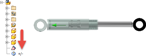 - Klikněte pravým tlačítkem na umístěnou podsestavu v grafickém okně a potom vyberte položku Flexibilní. Volnost pohybu povolená v podsestavě bude k dispozici v nadřazené sestavě. Ikona označující flexibilní stav určuje podsestavu v prohlížeči.