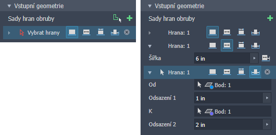 Přidat sadu hran Přidáním sady hran vytvoříte přírubu s jinými možnostmi. Rozbalením sady hran zobrazíte jednotlivé hrany v sadě a jejich možnosti.