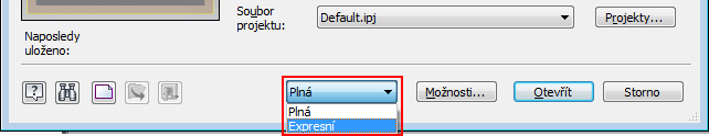Určit, jestli se má sestava otevřít v plném nebo expresním režimu, lze také v dialogu Možnosti otevření souboru. Možnosti otevření souboru jsou dostupné prostřednictvím okna Domovská stránka