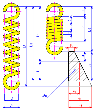 - Plně zatížený: pružina je podrobena největšímu pracovnímu zatížení (index 8)