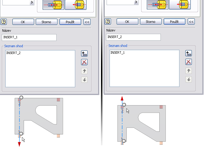 Určuje odpovídající typ vazby, když je součást vložena a spojena vazbou v sestavě.