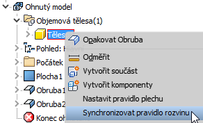 Klikněte pravým tlačítkem na plechové těleso v prohlížeči a vyberte možnost Synchronizovat pravidlo rozvinu.