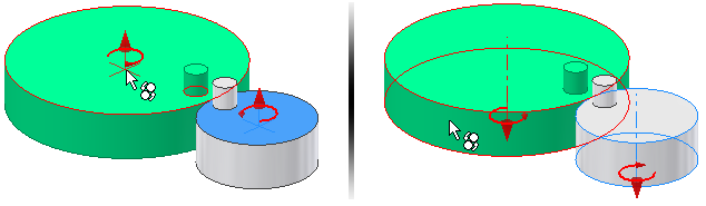 Chcete-li určit poměr rotačních komponent, vyberte na každé komponentě kruhovou plochu nebo hranu. Chcete-li vypočítat poměr na základě relativní velikosti, vyberte na každé komponentě válcovou plochu.