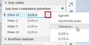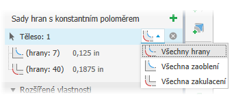 Na panelu vlastností se okamžitě aktivuje možnost Sada hran s konstantním poloměrem