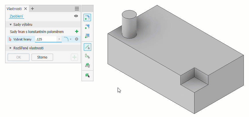 V dialogu Sada hran s konstantním poloměrem určete velikost zaoblení.