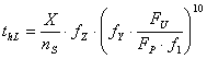 Předpokládaná životnost bez únavy válečku a pouzdra opakovanými rázy se určí pomocí následující empirické rovnice: